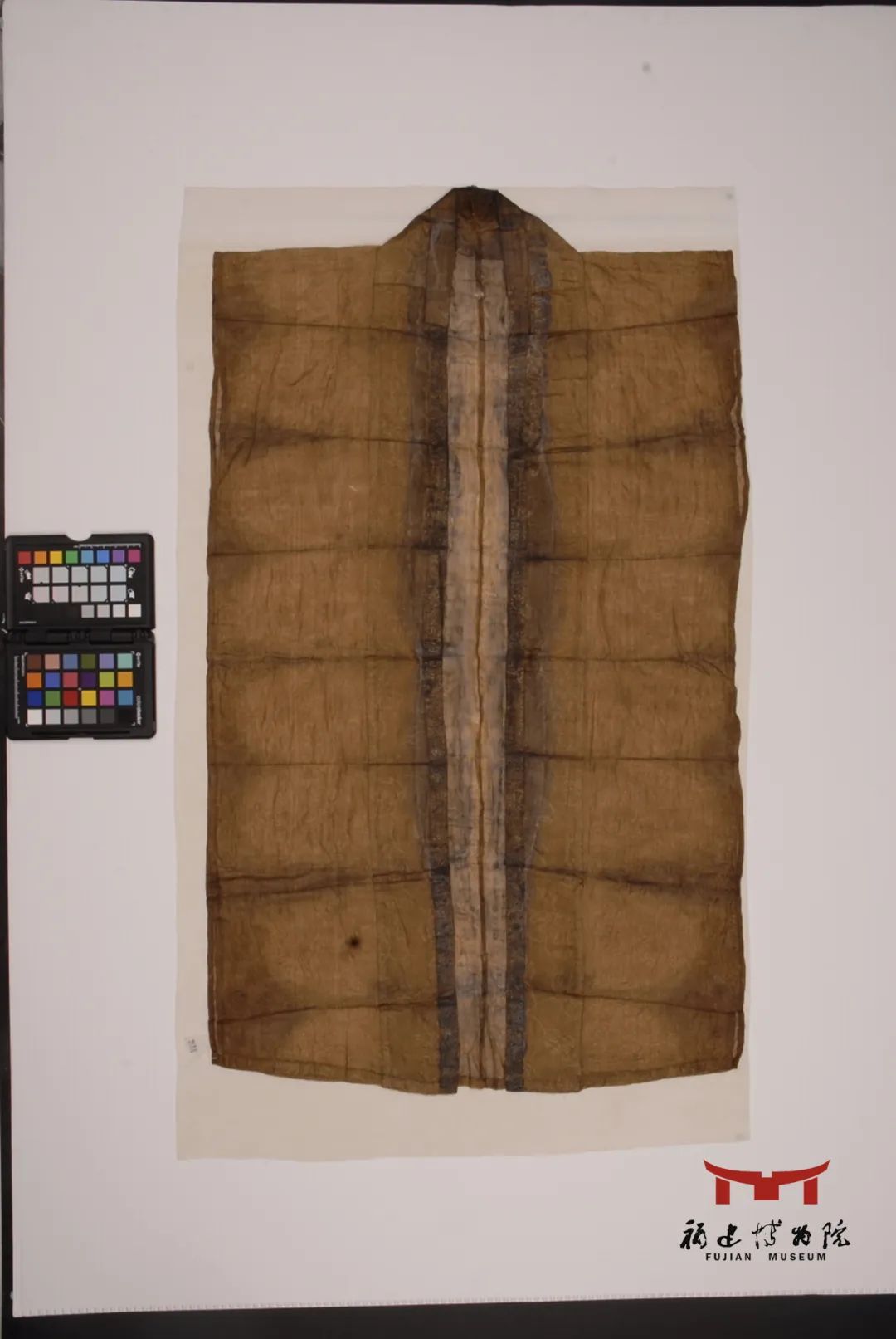 其中一件南宋褐色罗印金填彩花边无袖单衣,是通幅染成褐黄色的名贵罗织物。单衣仅重16.7克,质地虽然轻薄,但手感十分柔韧,正像陆游所说:“举之若无,裁以为衣,真若烟雾。”不难看出南宋士人阶层的富贵与康宁。南方夏季极为炎热,罗因其质地轻薄、凉爽舒适,是人们非常喜爱的高级丝织品。南宋在宗室比较集中的泉州、福州两地,办起了官营手工业作坊,专门生产供皇家使用的“纤丽之物”。