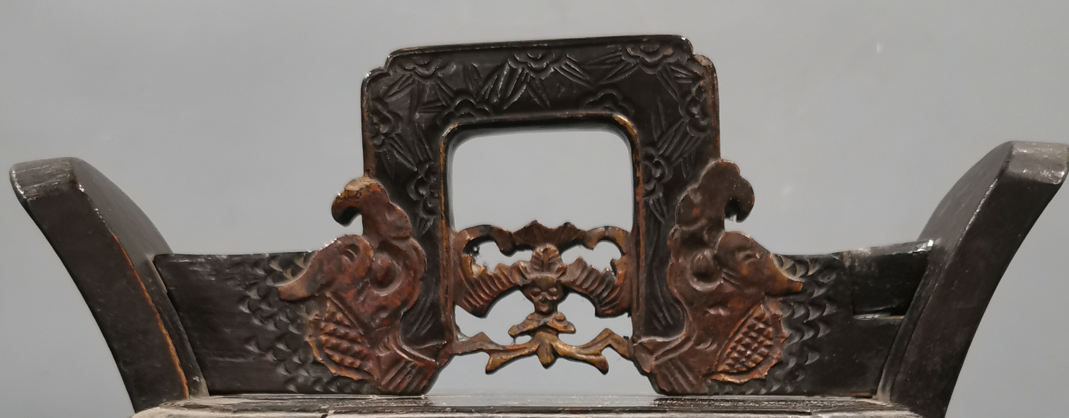 福建民俗博物馆收藏有一个清代金漆茶桶,高33厘米,以樟木为材质,桶身髹红漆,分为两层,桶盖浮雕“鱼化龙”纹,用来存储茶叶。还有一件民国时期的椿木福禄寿纹茶壶桶,提手处雕饰蝙蝠,正面雕福禄寿三星像,寄托吉祥平安之意、飞黄腾达之愿,可以用来保温茶壶。
