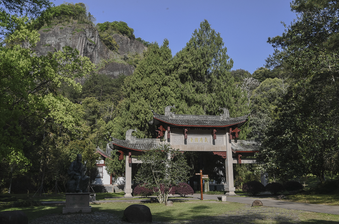 武夷精舍位于武夷山隐屏峰下、九曲溪畔,是理学大师朱熹于宋淳熙十年(1183年)所建。1178年初秋,朱熹游览武夷山时,见九曲溪旋绕曲折,隐屏峰下云气流动,顿觉耳目一新,萌发出“眷焉此家山”的建屋念头。经过数年筹措,精舍终于在淳熙十年动工,朱熹亲自带领一众弟子荷锄挑担、垒石砌瓦,当年就初见规模。精舍建成时,陆游寄来贺诗四首,其中一首写道:
