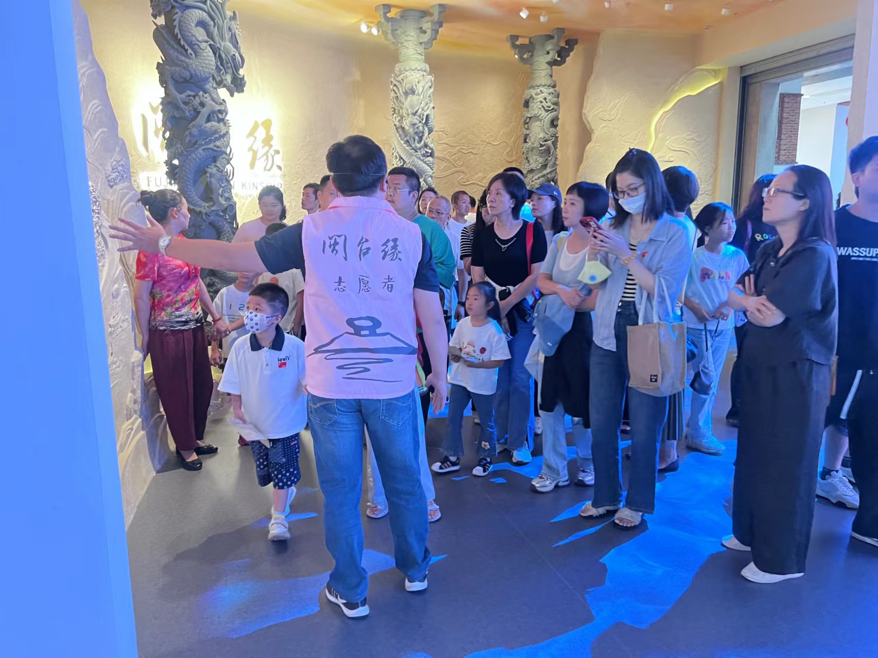 志愿者向观众介绍新版《闽台缘》主题展览(福建·中国闽台缘博物馆供图)