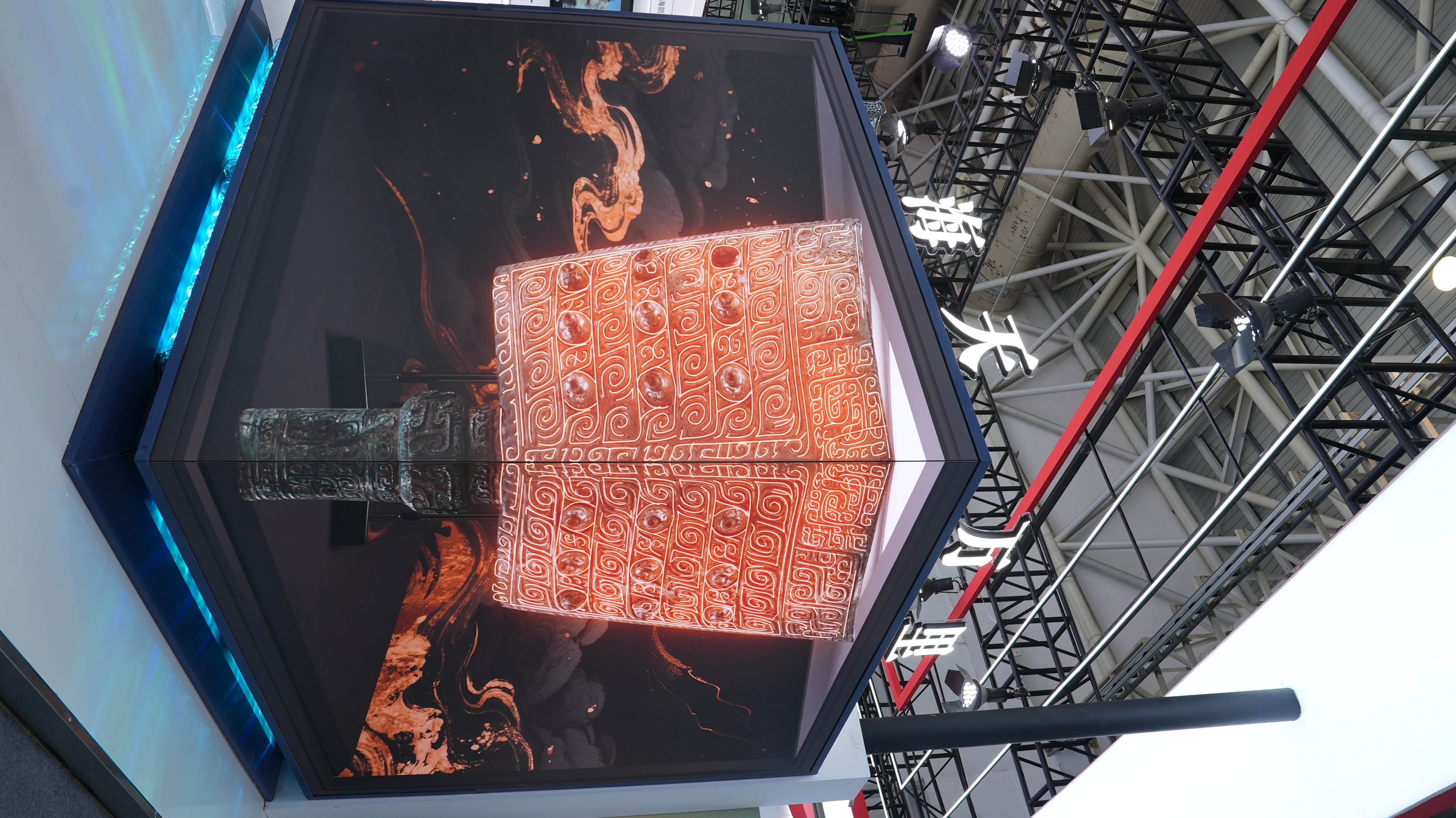 福建博物院打造的“海天万里——文物3D互动”项目,是展区的一大亮点。该项目聚焦明代德化窑文昌坐像与西周云雷纹青铜大铙两大馆藏瑰宝,借助优美震撼的3D动画,生动讲述文物背后的历史故事。观众无需佩戴任何设备,便能目睹文物“跃”出屏幕,铜器精美纹饰、白瓷温润釉色触手可及,这种沉浸式体验让观众与文物“亲密接触”,深刻领略历史文化的独特魅力。