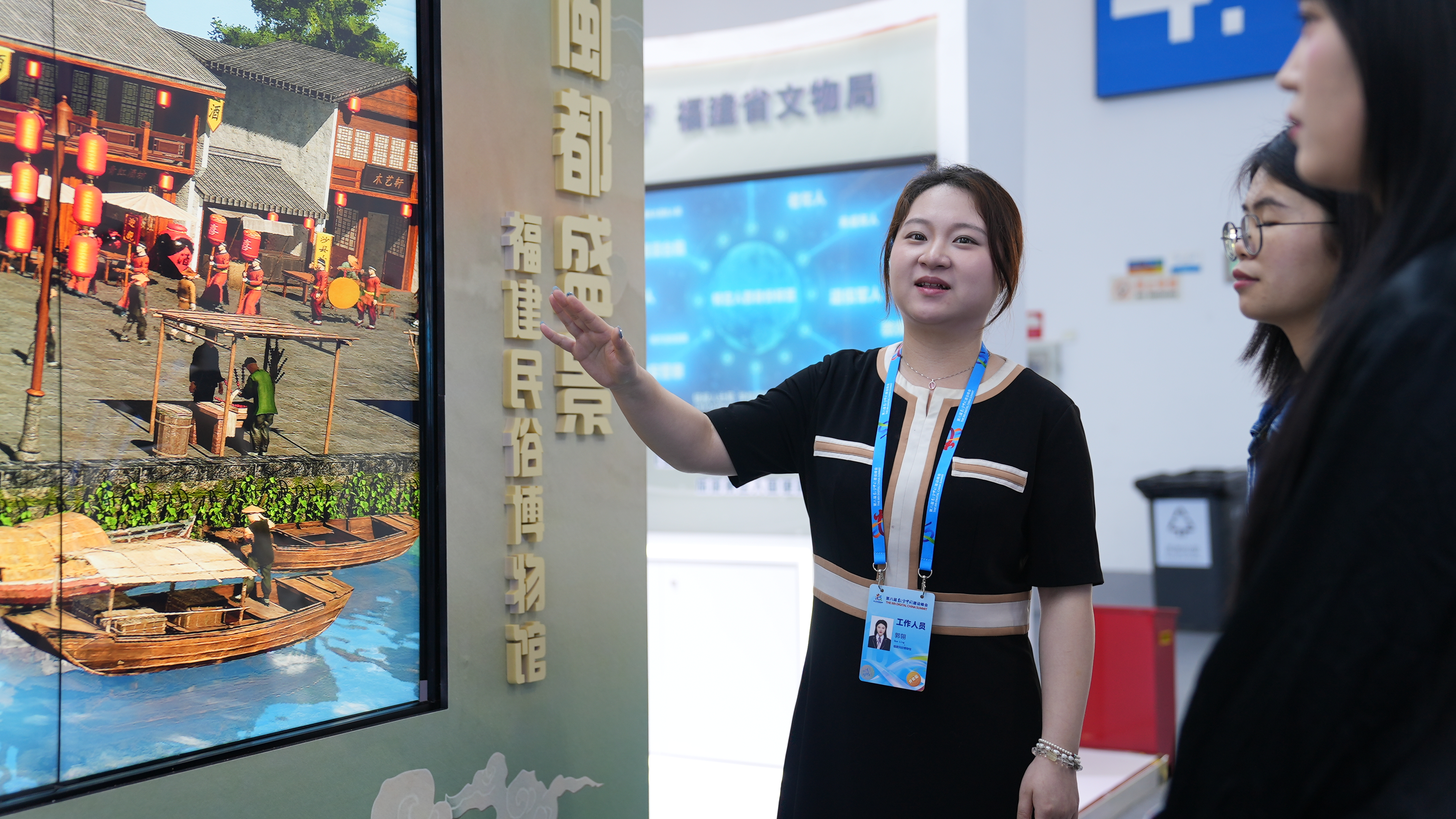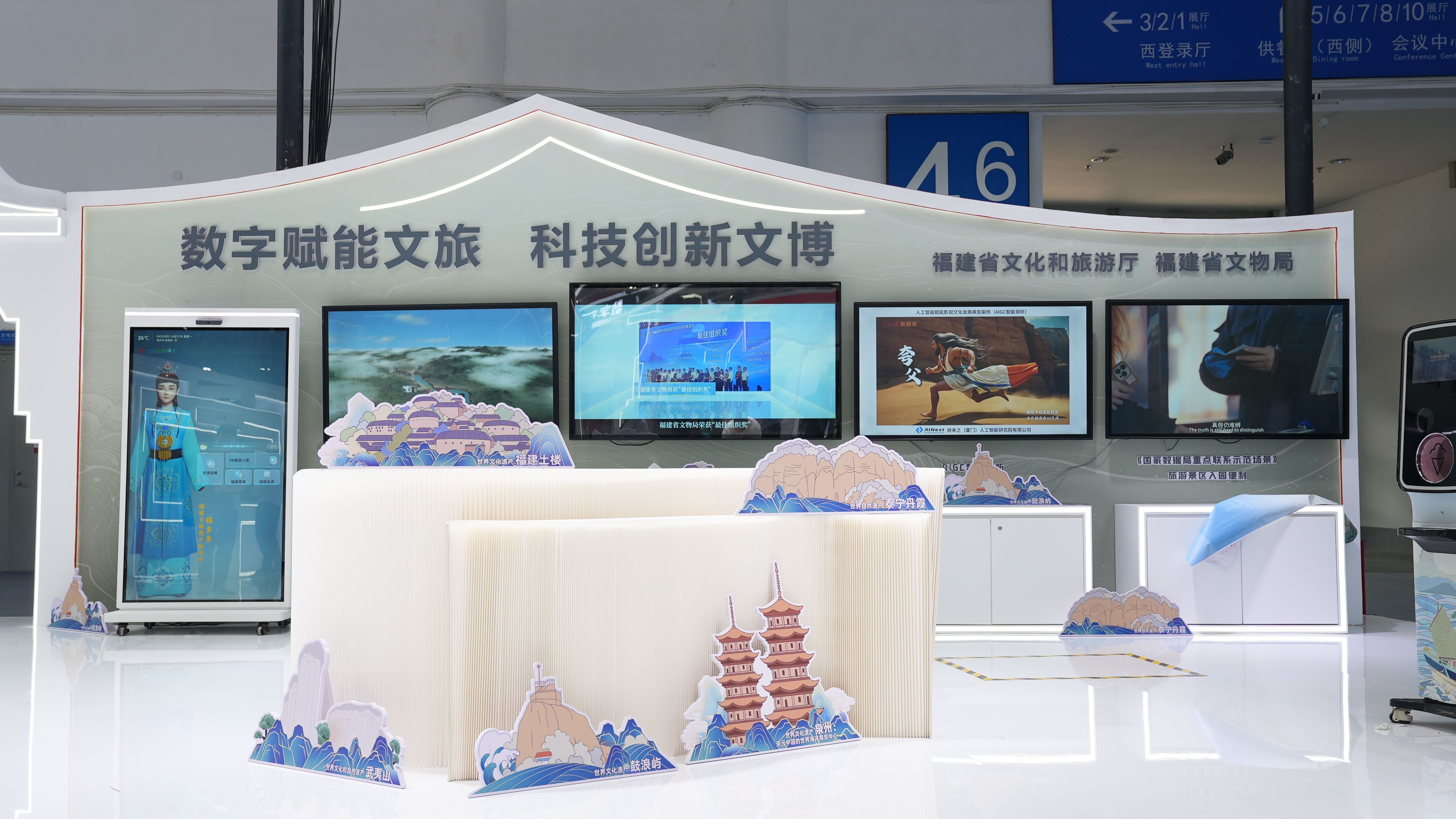 榕城焕彩时,数字浪潮涌。4月29日,第八届数字中国建设峰会在福州盛大开幕。为充分展示福建省近年来文化旅游工作改革创新、多元发展的新成果,由福建省文化和旅游厅、省文物局主办,福建博物院、福建民俗博物馆承办的“数字赋能文旅 科技创新文博”专题展区亮相海峡国际会展中心数字福建馆(4C01展区),吸引了众多观众驻足参观、体验。