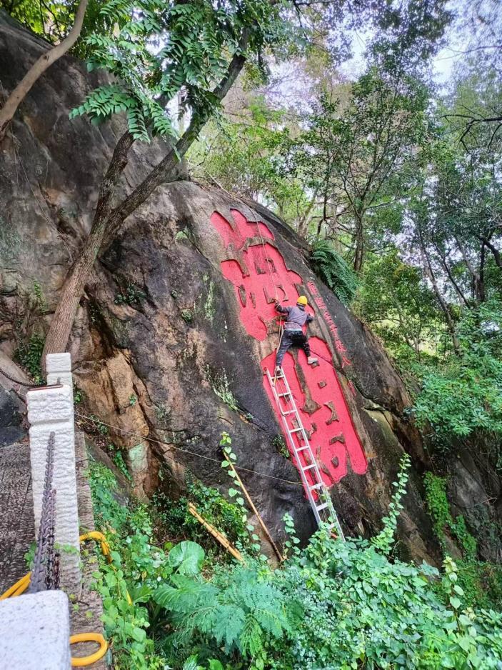 与此同时,摩崖石刻爱好者们也以多种方式贡献着自己的力量。高健斌在文物考察之余积极参加各类公益讲座、研学活动,持续普及摩崖石刻相关知识,增强大众的文物保护意识;林强参与编撰了《福州摩崖石刻史话》,该书于今年1月正式发布,用130篇趣味性较强的文章讲述摩崖石刻极为丰富的内涵;陈光波每次描红前,都会花大量时间精力认真揣摩字形,力求最大限度地还原呈现古人书法中的意韵和美;蔡铁勇则在福州鼓山、乌山等地提供志愿讲解,他对江西游客讲曾巩、郭汝霖等人在福州的经历,对官员干部讲石刻中为民祈报的担当和忧国忧民的情怀,帮助游客读懂石刻上的文字,更通过寻找摩崖石刻与来访者兴趣的契合点以展开精准推介。