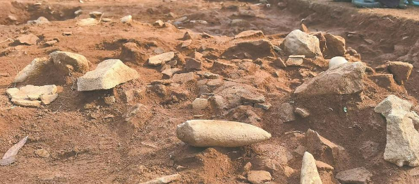 仓里山遗址出土 石制品与陶片堆