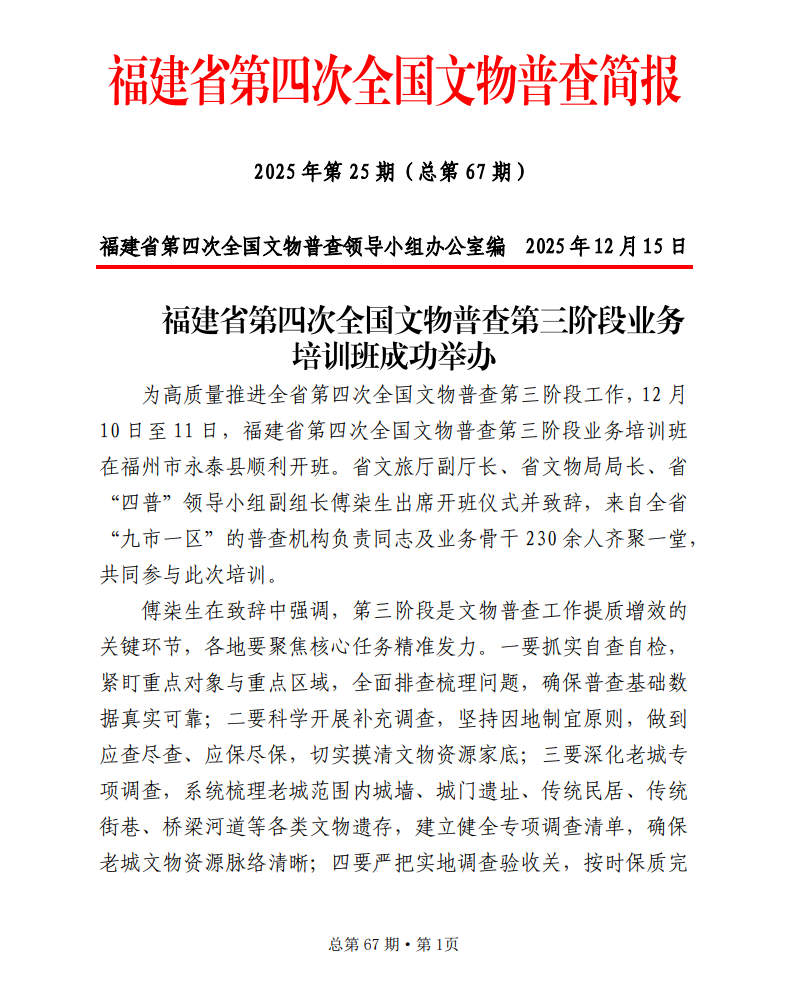 福建省第四次全国文物普查简报(25年第25期)