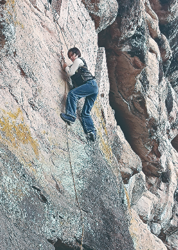 在金鸡山古崖洞开展野外调查时,武夷山市普查队分队长逄博如吊着绳索攀登悬崖。
