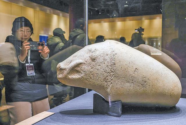 2007年出土的玉猪是首次展出。这只“野猪”长着凸鼻子,龇着獠牙。“从颈部到尾部皆无任何人为加工痕迹。”徐琳说,它是目前我国考古发现的同时代形体最大和最重的玉雕作品,可能有镇墓功能。还有一件玉虎首璜,右侧虎首是1987年出土的,左侧是2007年再次启动考古时发现的。在地下沉睡5000多年后,两虎时隔30年再次合璧。