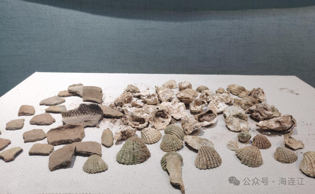 ▲黄岐屿遗址采集的陶片和贝壳