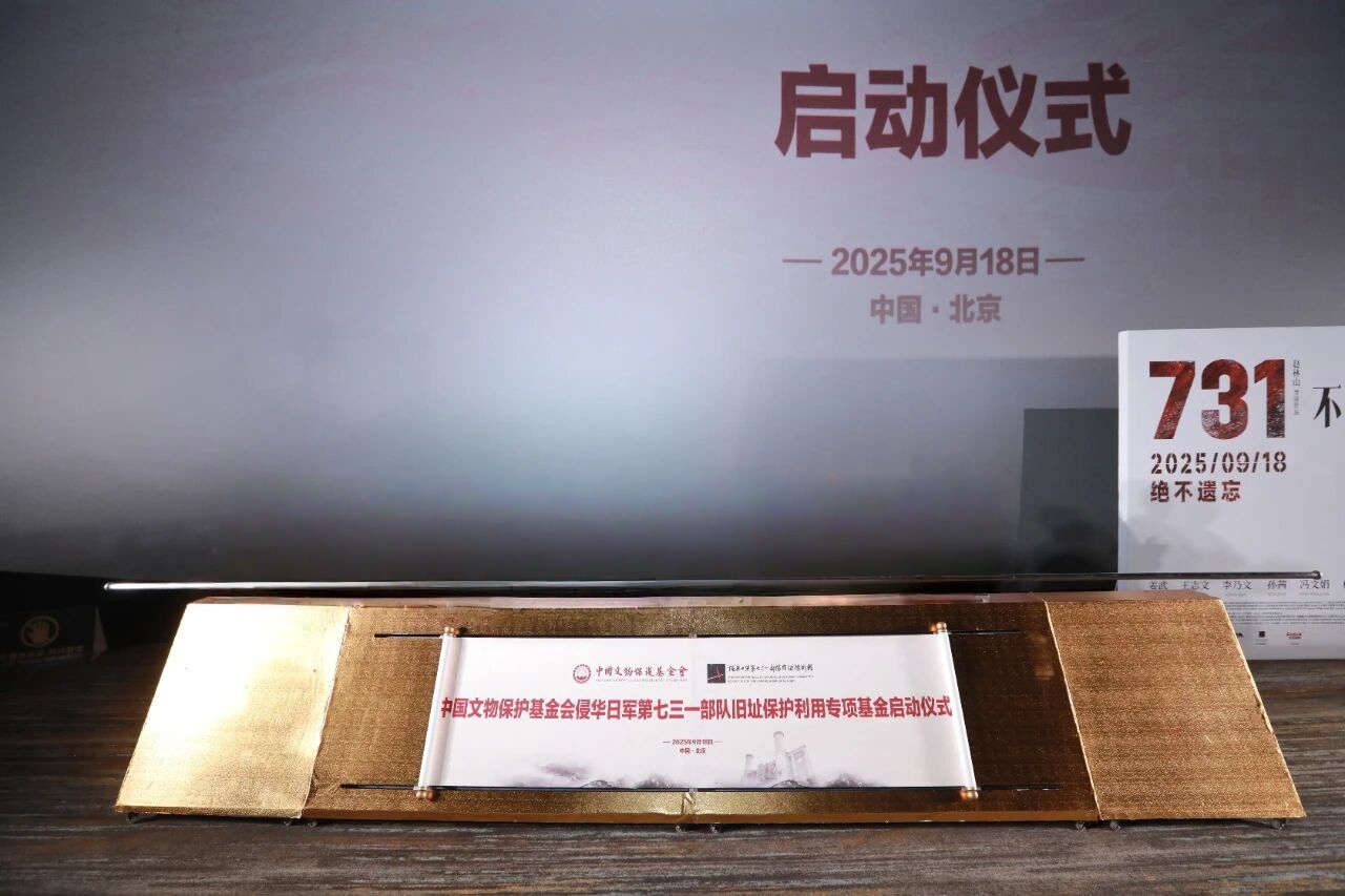 9月18日,中国文物保护基金会侵华日军第七三一部队旧址保护利用专项基金成立仪式在京举办。该专项基金的设立,是中国文物保护基金会动员社会力量、合力公募资金、拓展业务范围的创新实践,旨在助力侵华日军第七三一部队旧址科学保护、深入研究、价值挖掘和活化利用,并将旧址打造为激发爱国情怀、传播和平理念、汲取奋进力量的重要阵地。