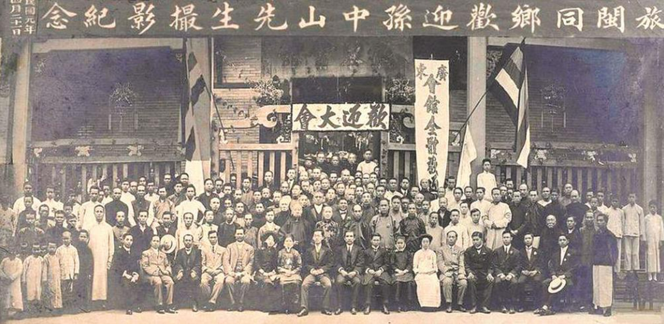 1912年4月21日,孙中山在福州广东会馆与留闽广东同乡会欢迎者合影。