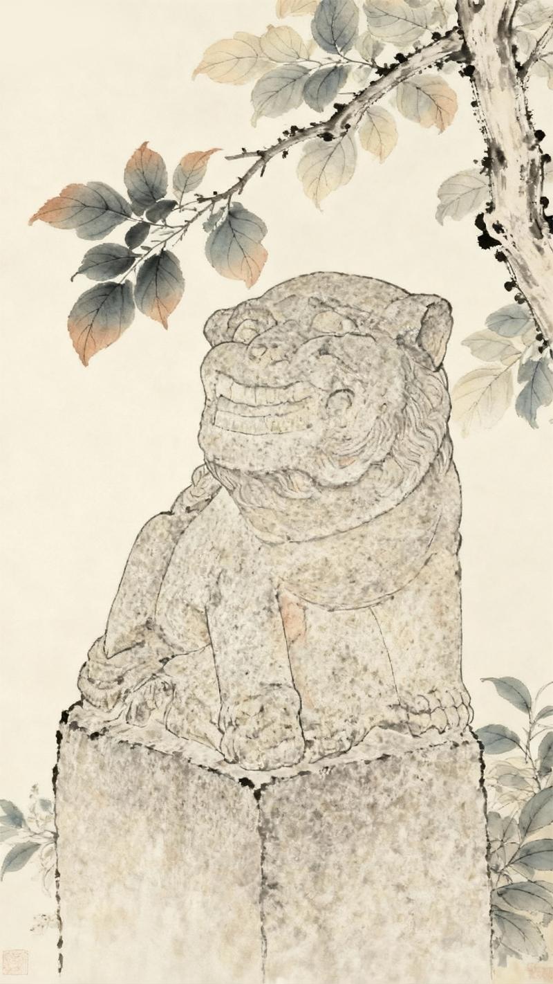 世华墓狮子“墓柱”装饰(AI制图)