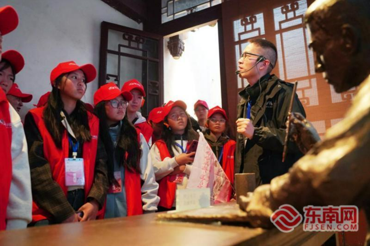 午后,师生们走进被誉为“半部近代史”的三坊七巷。青石板路镌刻岁月痕迹,这座福州文化核心区静静诉说着千年闽都的人文积淀。在杨桥巷的冰心与林觉民故居,导游娓娓道来两位名人“同宅而居”的渊源。