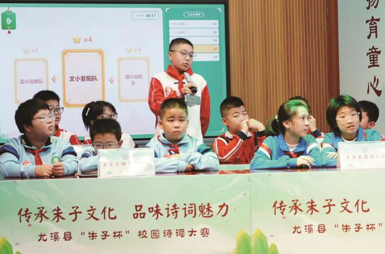 文化传承,自童蒙始。“古礼承薪,童蒙养正”朱子释菜礼暨启蒙教育活动、“朱子杯”校园诗词大赛、《朱子家训》六合竹简点读……通过开展一系列精彩纷呈的活动,朱子文化如春风化雨,浸润尤溪的校园。各校还结合自身特色,以诗词感悟、童蒙课堂、非遗传宝、朱子生平图片展等形式,让朱子思想在少年心中生根发芽,实现文化传承与立德树人的深度融合。