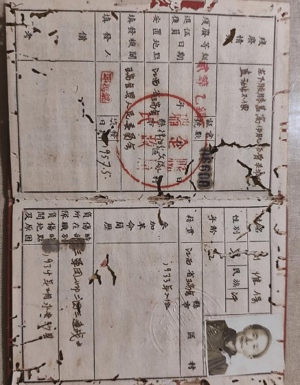 “我找到一本《中央人民政府革命军人残废证》,见证了1934年红军攻克沙县城的那段历史,十分珍贵。”沙县收藏家江剑飞向记者报讯,并发来了《革命军人残废证》的照片。在沙县小吃文化城,记者见到了这本充满岁月痕迹和历史沧桑的证书。