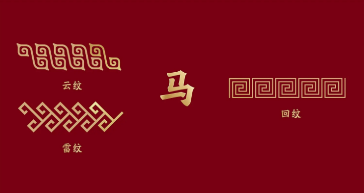 春晚主标识从晚会主题“骐骥驰骋”中提炼“四马齐驱”的创意灵感,巧妙融合中国传统云纹、雷纹、回纹的经典元素,勾勒出四匹骏马齐头并进、拾级而上的视觉意象,既彰显传统美学韵味,又传递出奔腾奋进的时代气息。