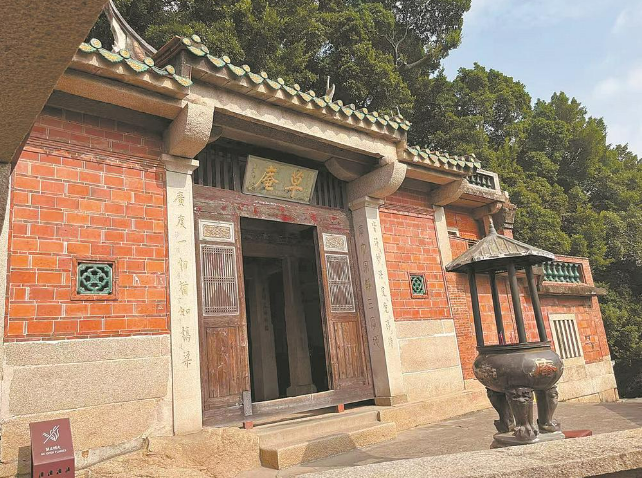 临近冬至,寒风阵阵,但晋江华表山南麓依然绿意盈盈,全国重点文物保护单位草庵寺便坐落于此。