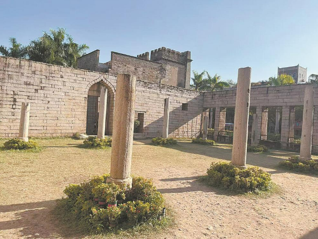 “奉天坛”是穆斯林诵经礼拜之所,如今尚存花岗岩残柱。