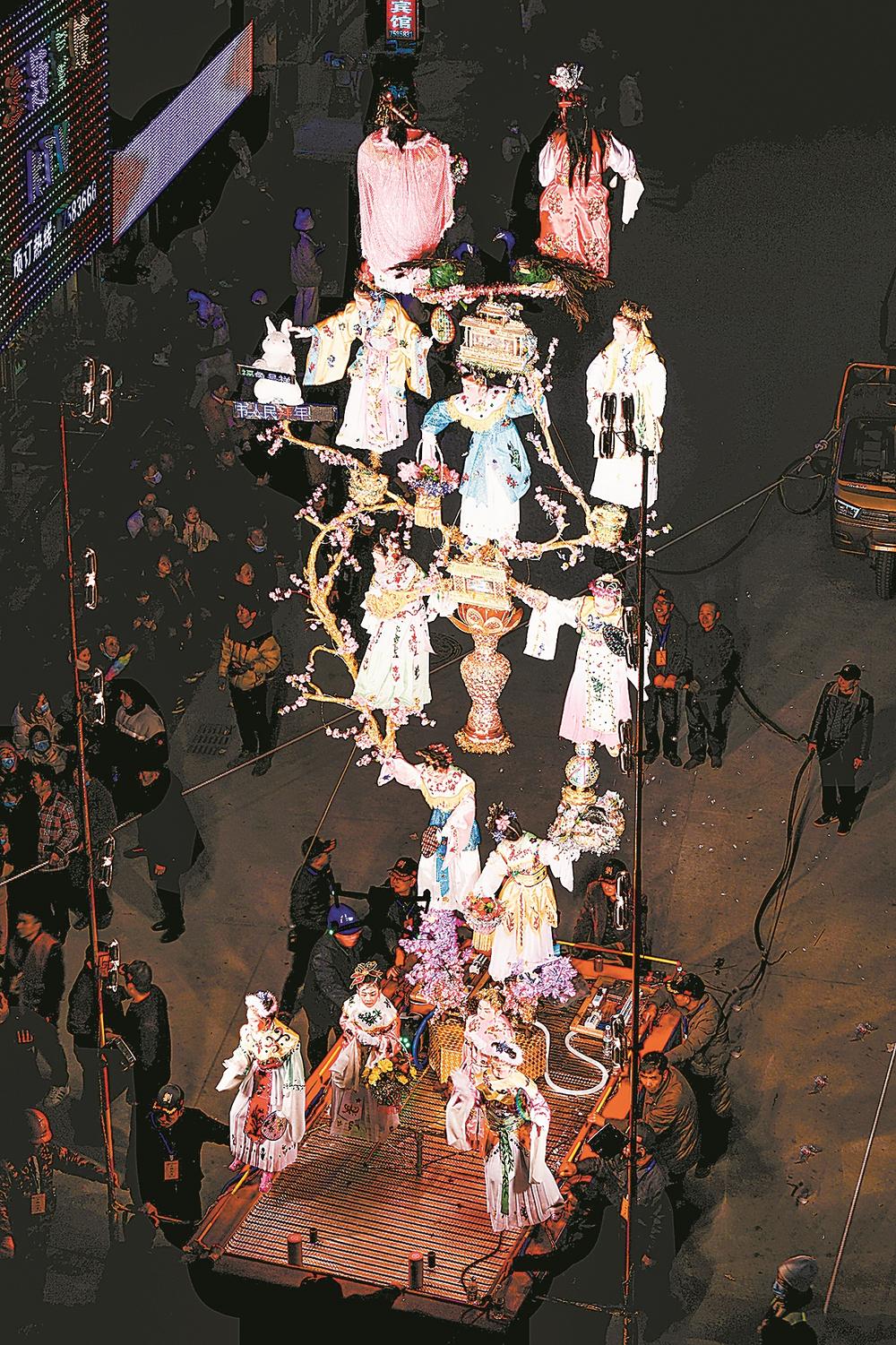 1月9日,记者走进沙埕海洋文化馆,正在播放的纪录片中,一台高达8.5米的沙埕铁枝在灯光流转间缓缓移动,宛若云中瑶台。小演员于枝头错落而立,衣袂飘飘,凌空俏立。人群之中,国家级非遗沙埕铁枝传承人刘端富仰头凝视,目光如炬。