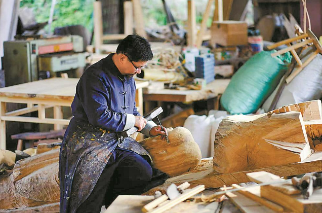 1月9日,记者来到池长主的工作室,只见屋里堆满奇形怪状的树根。“学会一门手艺,才有立身之本。”他拾起一块木料轻声道。