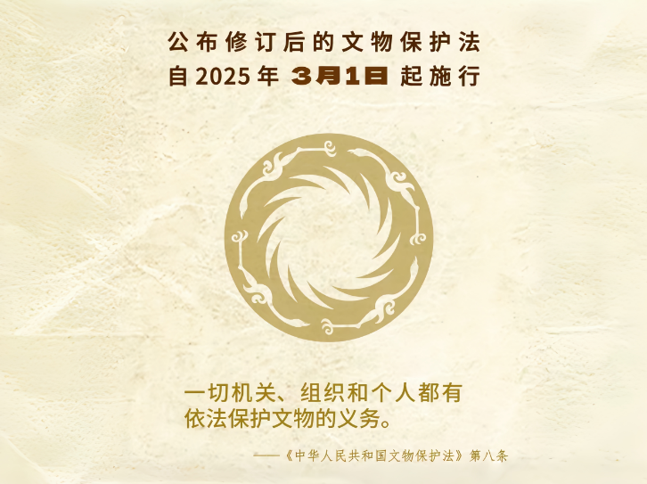 3月2日,新修订文物保护法实施一周年座谈会在北京召开。会议指出,新修订的文物保护法正式施行一年来,国家文物局会同各地各部门深化宣传解读、健全配套法规、落实重要制度、全力督察执法,有力推动文物保护法全面贯彻实施,取得明显成效。会议强调,要加快构建中国特色社会主义文物保护法律体系,健全文物保护法配套制度,深化文物行政执法和司法实践,持续深入抓好法律宣传普及,推动新修订的文物保护法有效贯彻实施。