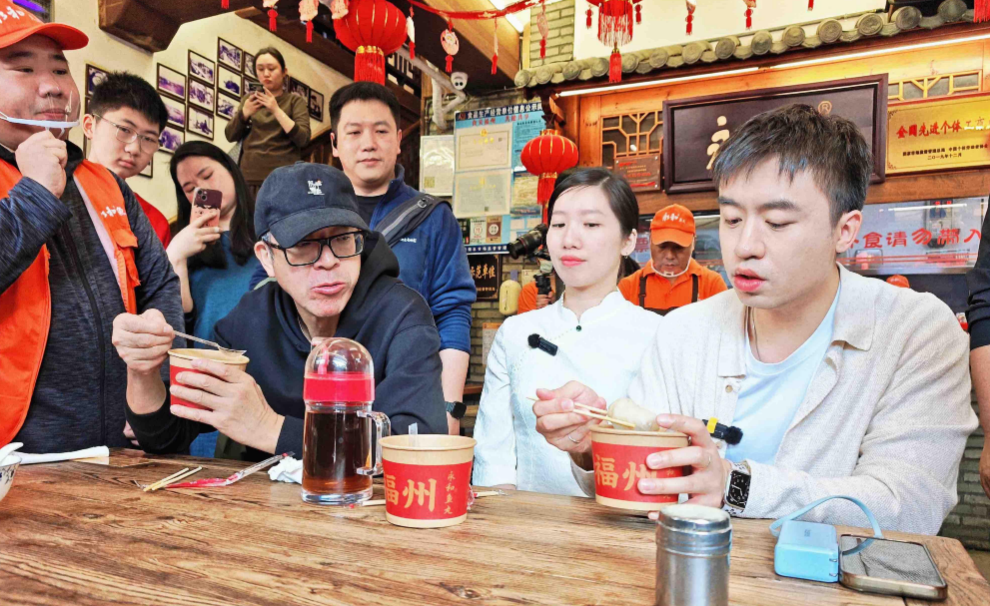 直播团队前往梁厝特色历史文化街区。这座藏在都市中的千年耕读古村,文风鼎盛,宋至清代曾走出27位进士,素有“无梁不开榜”的美誉。街区内30余座明清古厝连片成群,马鞍墙连绵、燕尾脊翘角,是闽派古厝建筑的活态博物馆。俞敏洪走进特色文化展示厅、梁氏宗祠,感受千年宗族文化与耕读传承;在春伦·大众茶馆坐下,品尝福州特色小吃锅边糊,伴着茉莉茶香体验慢节奏的榕城生活,古厝、田园、茶香交织成福州最诗意的日常。直播间内,网友踊跃互动:“刚拍了春伦花茶,清香太上头”“福州伴手礼认准这杯茉莉”。