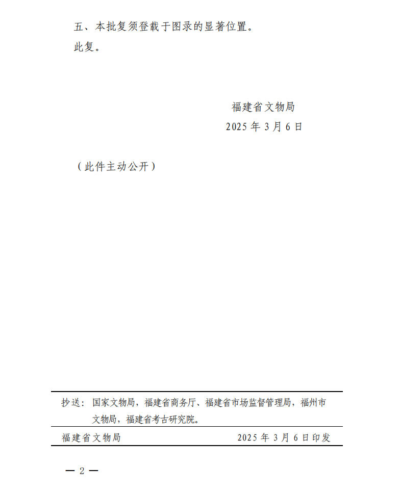 福建省文物局关于福建省居正拍卖行有限公司江南雅集2025新春书画拍卖会文物拍卖标的审核的批复