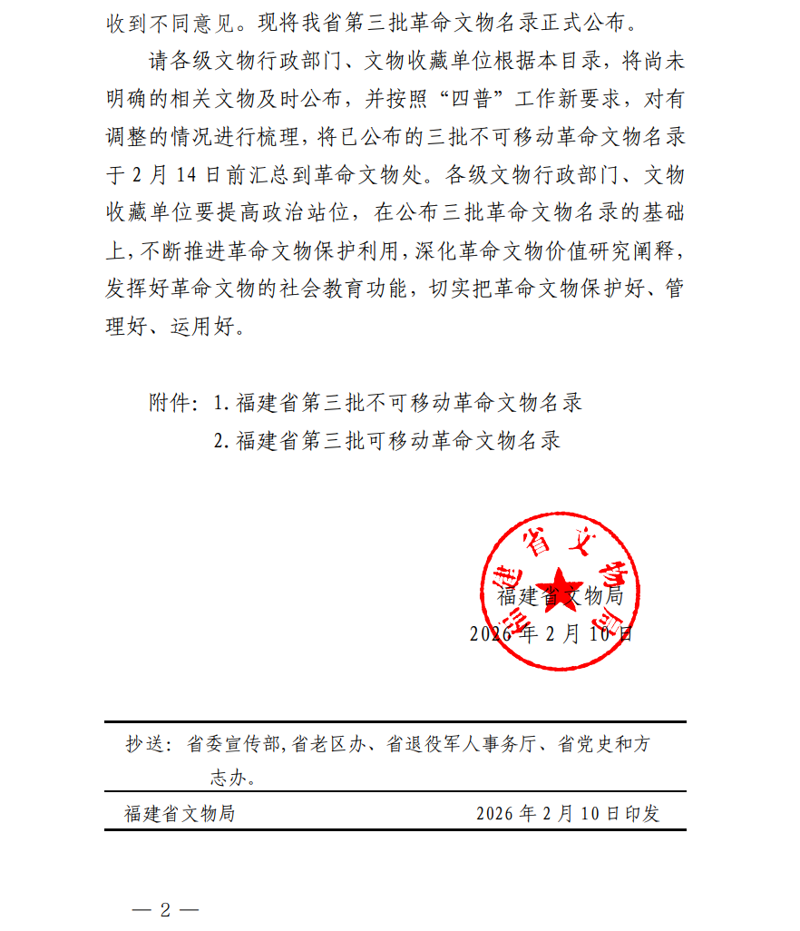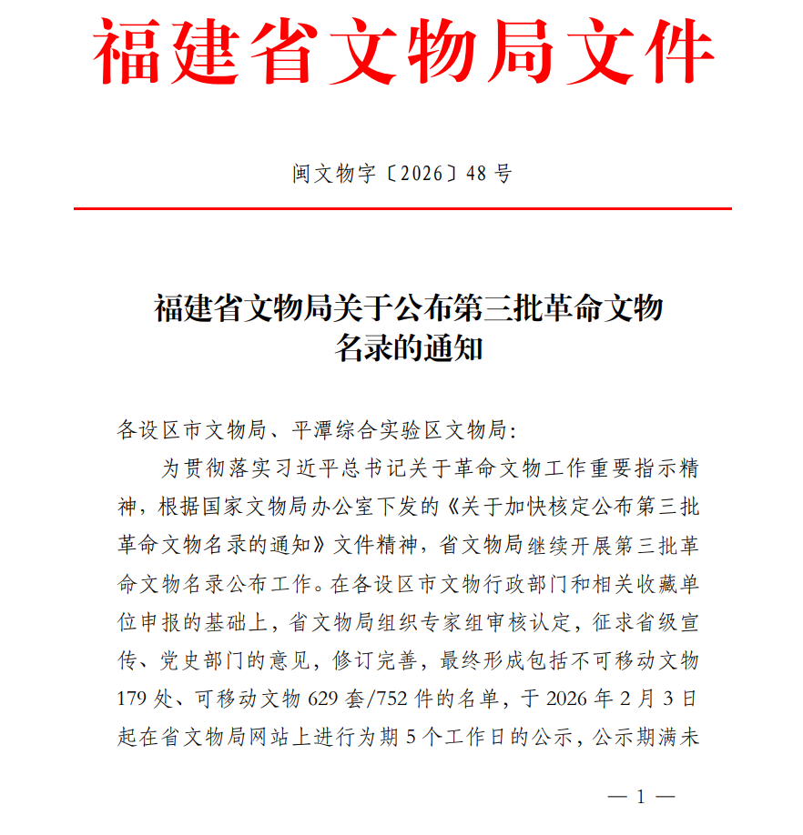 福建省文物局关于公布第三批革命文物名录的通知