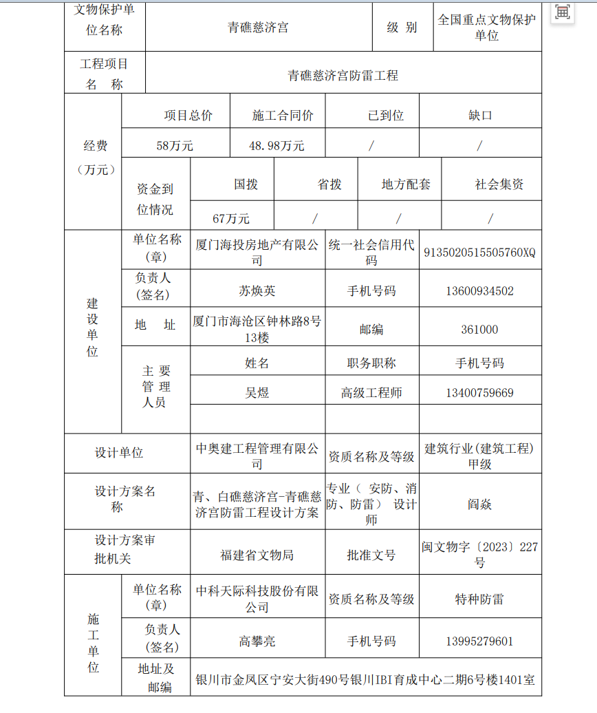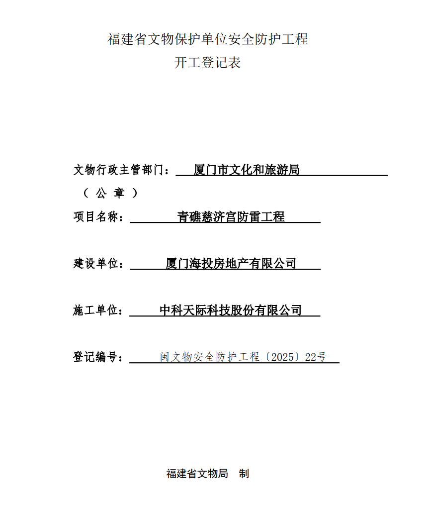 闽文物安全防护工程〔2025〕22号青礁慈济宫防雷工程