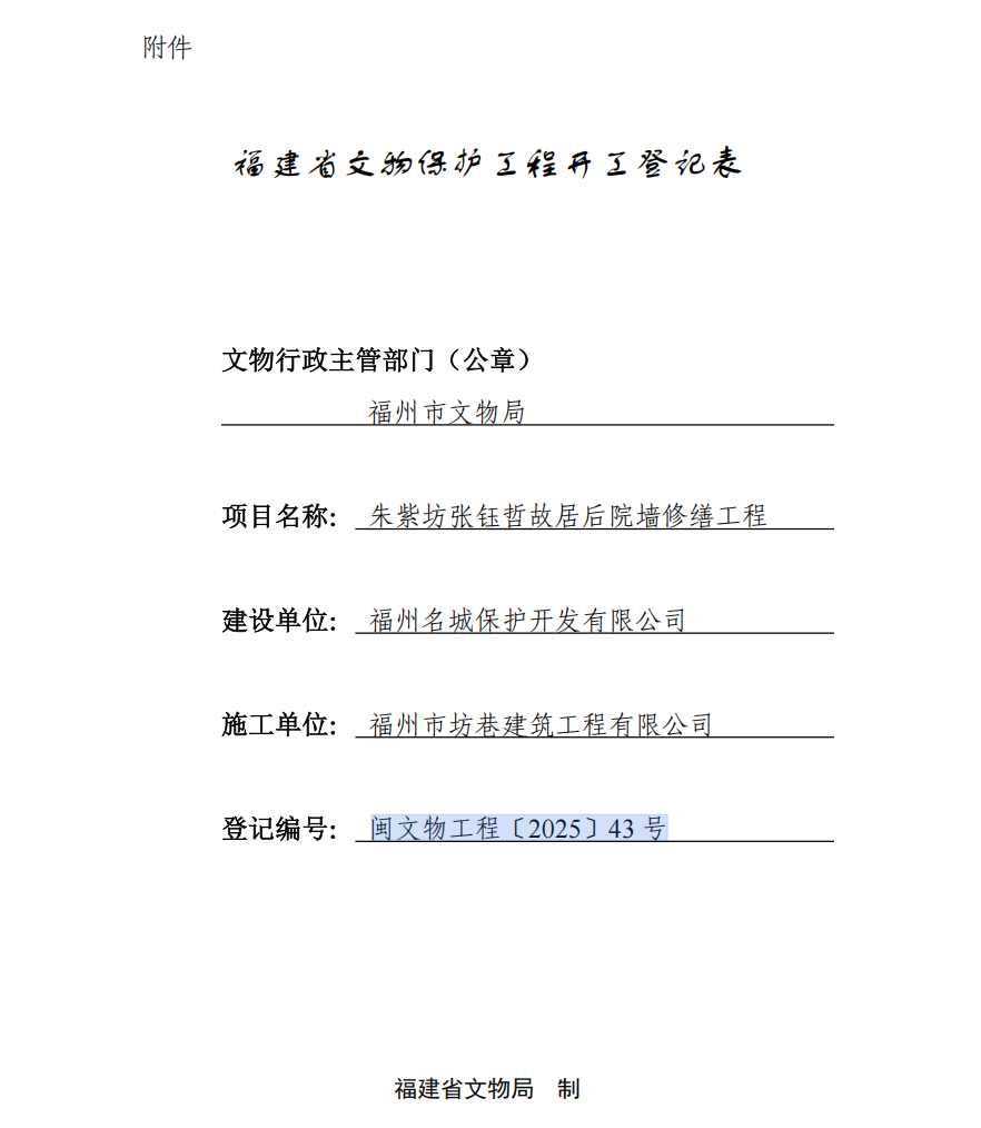闽文物工程〔2025〕43号朱紫坊张钰哲故居后院墙修缮工程