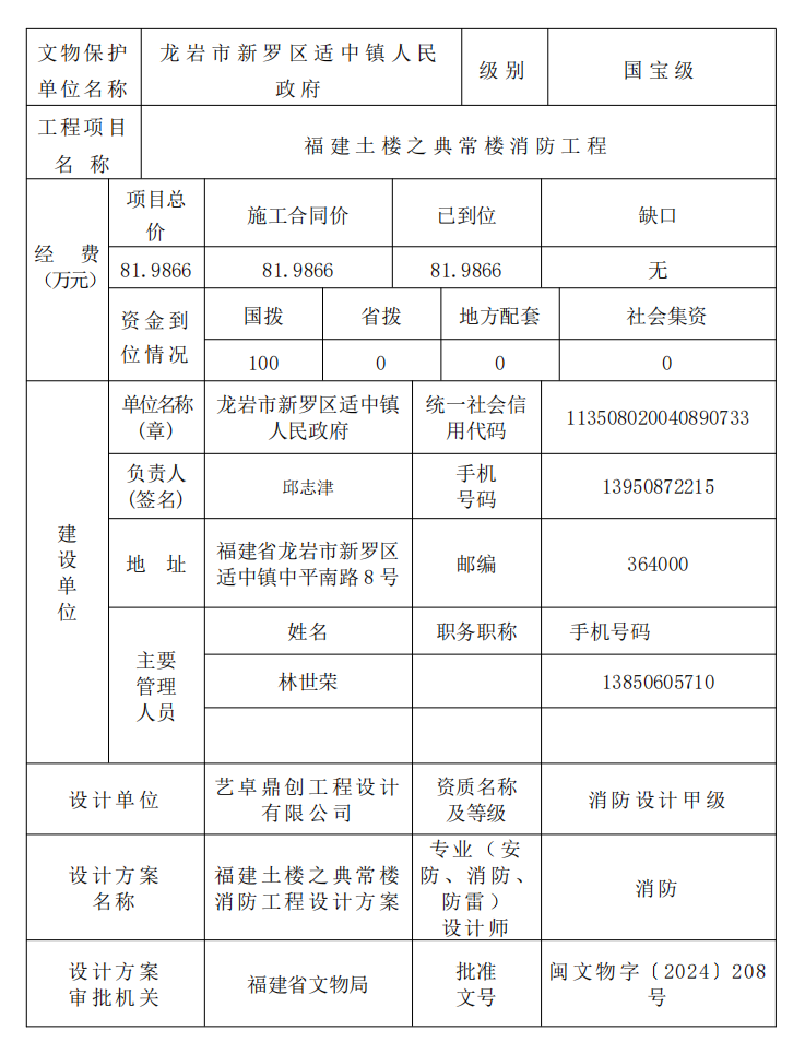 闽文物安全防护工程〔2025〕27号福建土楼之典常楼消防工程