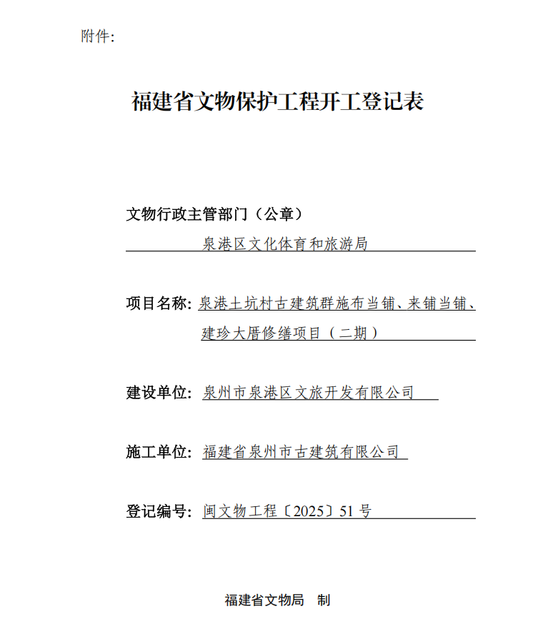 闽文物工程〔2025〕51号泉港土坑村古建筑群施布当铺、来铺当铺、建珍大厝修缮项目(二期)