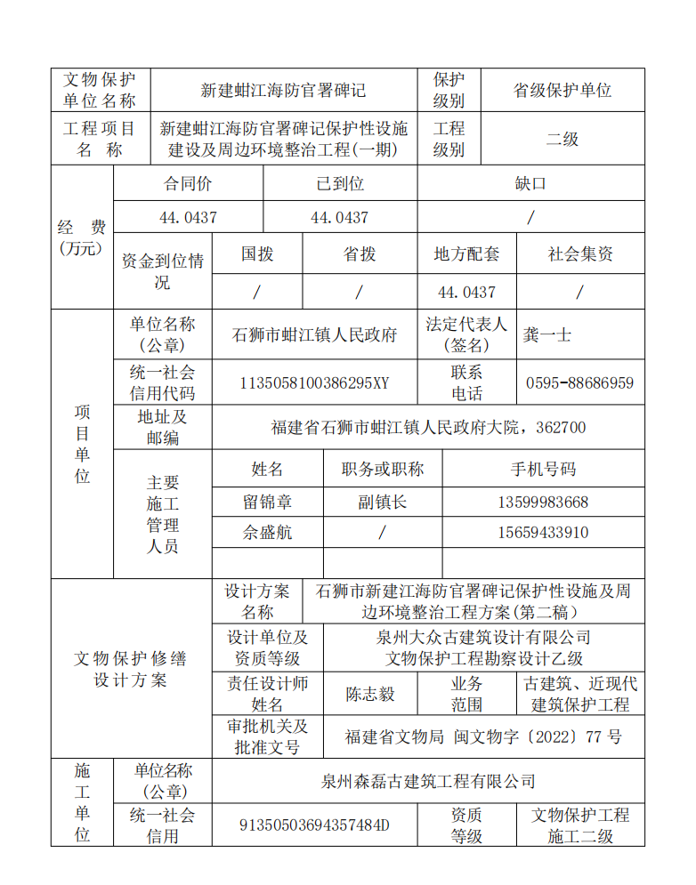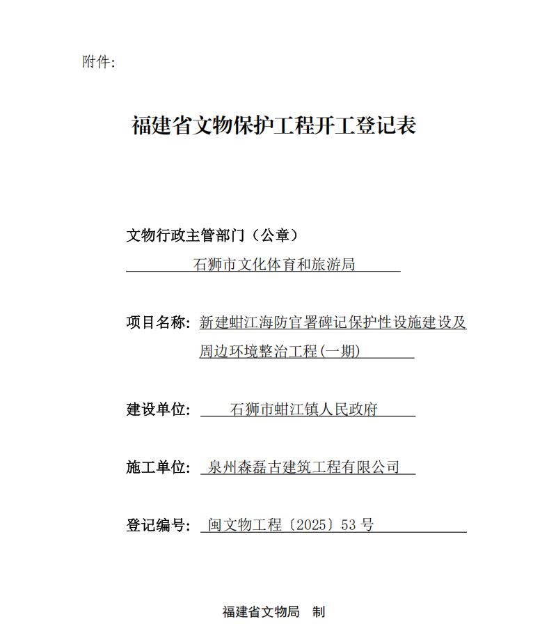 闽文物工程〔2025〕53号新建蚶江海防官署碑记保护性设施建设及周边环境整治工程(一期)