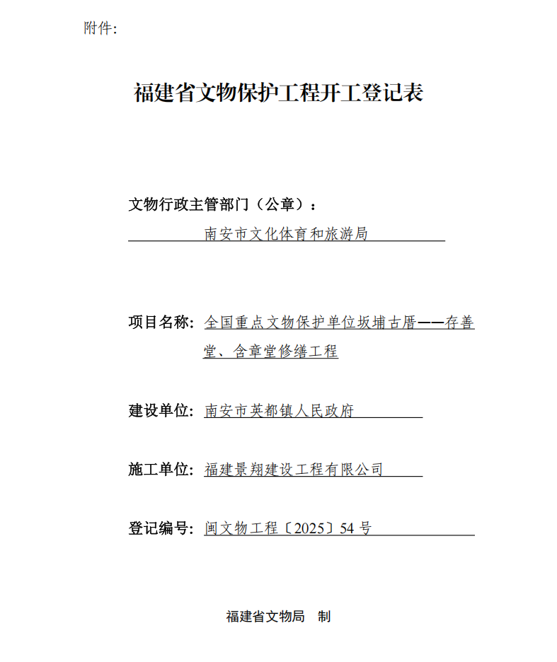 闽文物工程〔2025〕54号全国重点文物保护单位坂埔古厝——存善堂、含章堂修缮工程