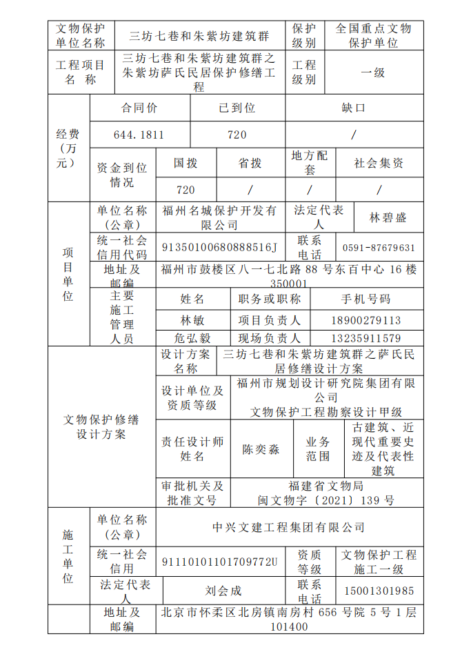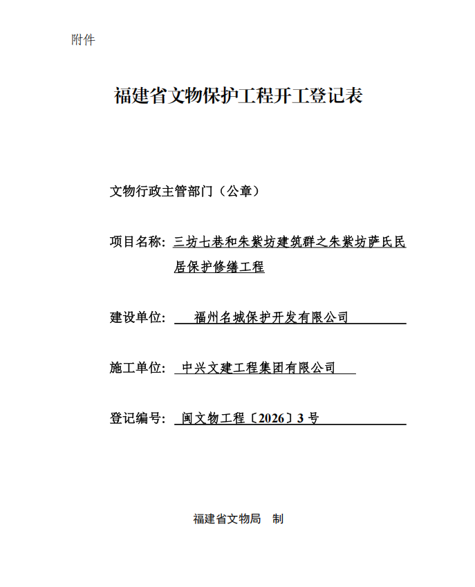 闽文物工程〔2026〕3号三坊七巷和朱紫坊建筑群之朱紫坊萨氏民居保护修缮工程