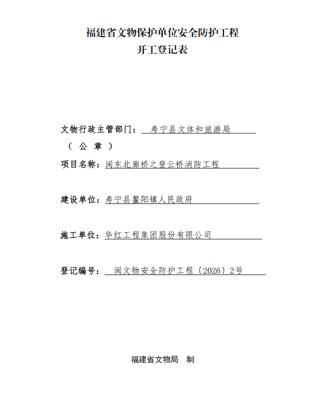 闽文物安全防护工程〔2026〕2号闽东北廊桥之登云桥消防工程
