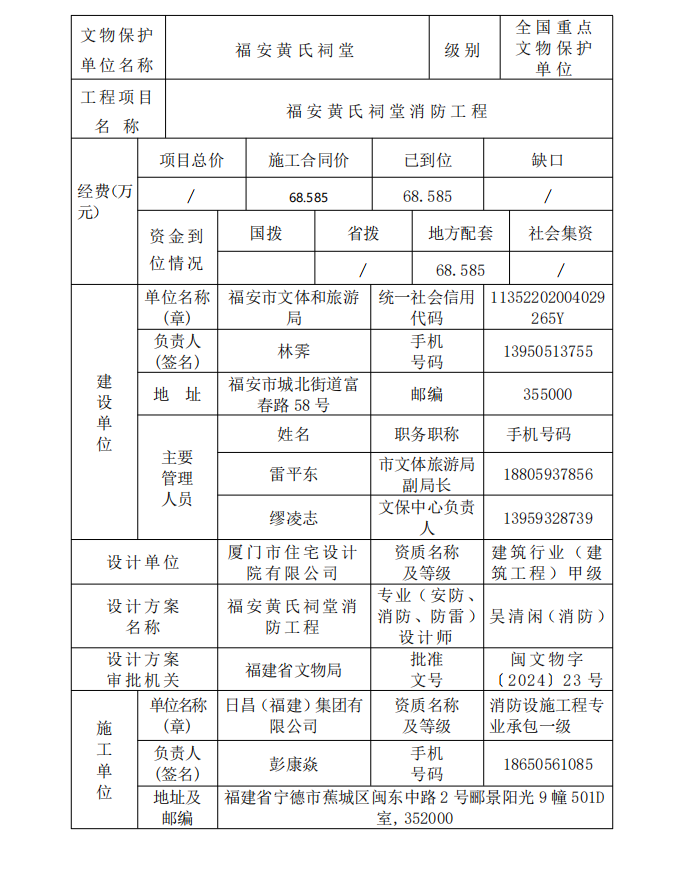 闽文物安全防护工程〔2026〕3号福安黄氏祠堂消防工程