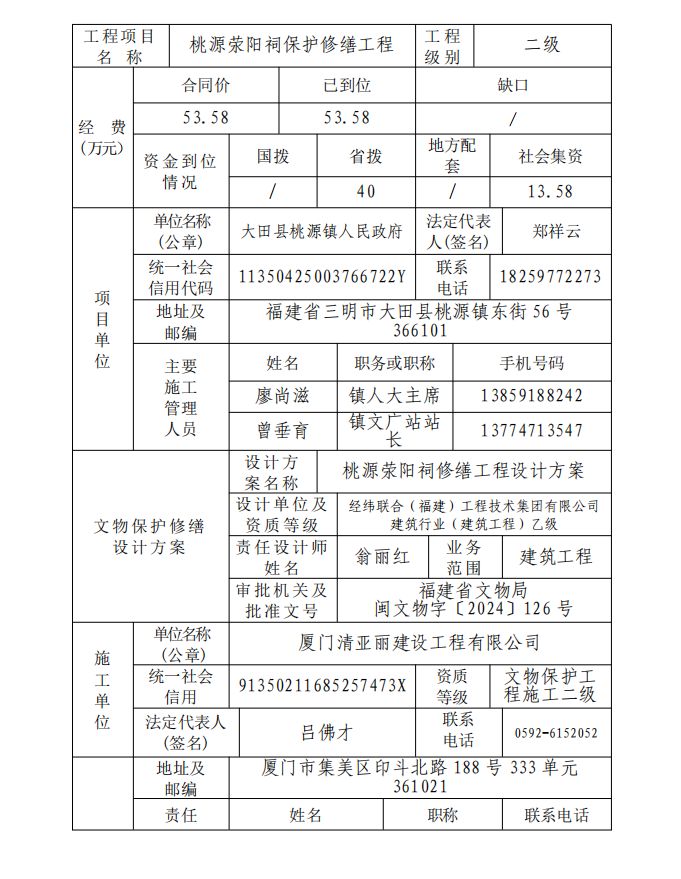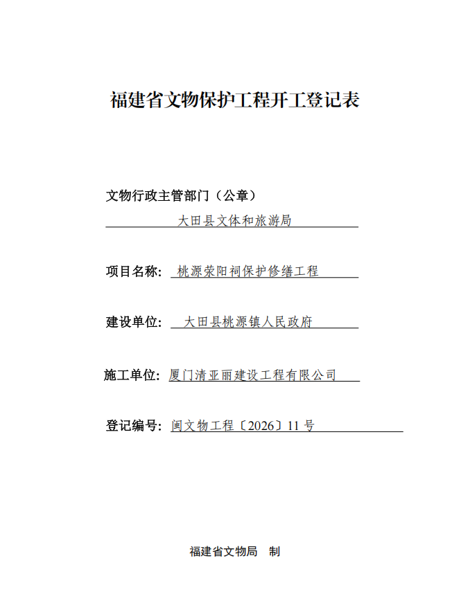 闽文物工程〔2026〕11号桃源荥阳祠保护修缮工程