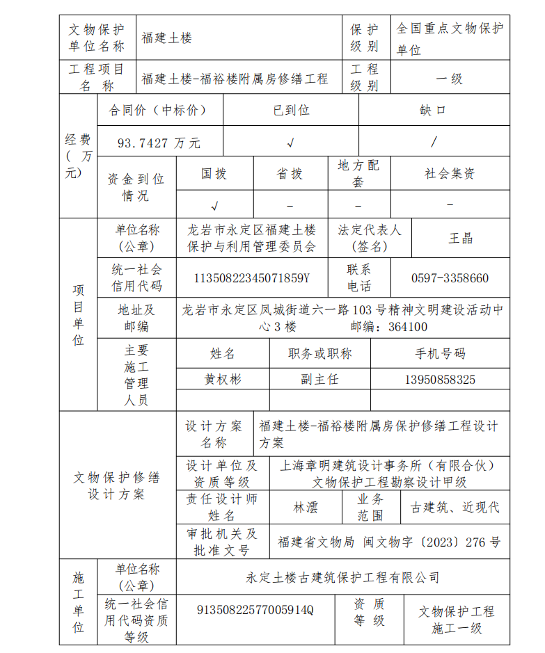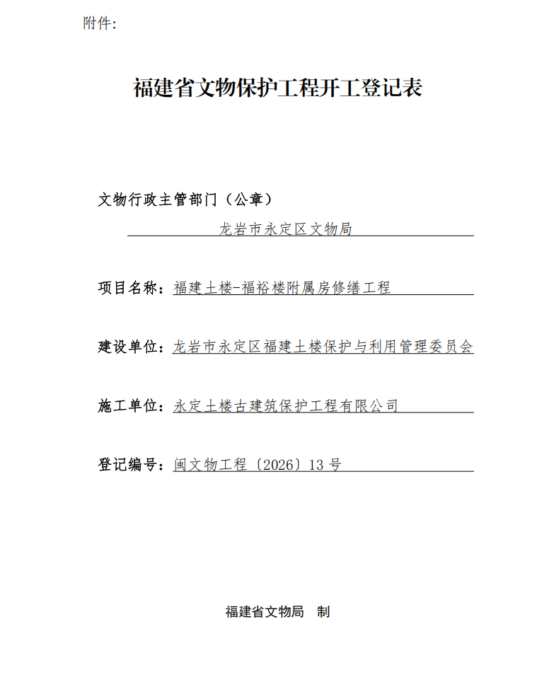 闽文物工程〔2026〕13号福建土楼-福裕楼附属房修缮工程
