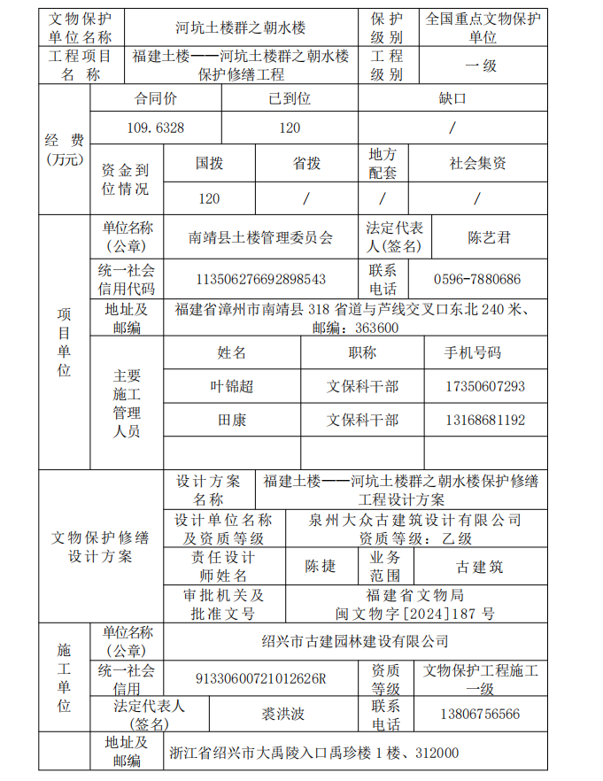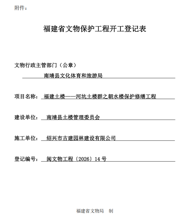闽文物工程〔2026〕14号福建土楼——河坑土楼群之朝水楼保护修缮工程