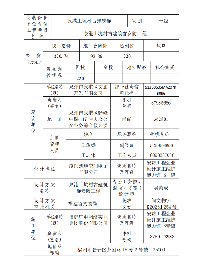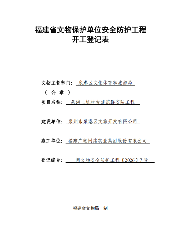 闽文物安全防护工程〔2026〕7号泉港土坑村古建筑群安防工程